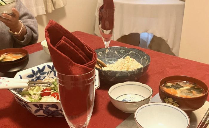 帰国早々の生徒さんがお土産を持って報告に来てくださるというので、大急ぎでシンプルなお昼を用意しました。広島の生徒さんから「DAFAの健闘を祈ります」と、大きな栗とすだちがたくさん届いていたので。帰国してすぐは和食も新鮮。健闘してくれた生徒さんから「先生とお揃いで買いました」と洋ナシやいちじくの柄のステキなテーブルクロスをいただきました。ご自宅で教室開講の目標に向かっている感じです。