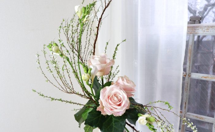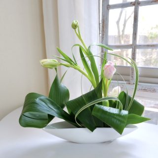 アトリエ フィオーリのWEBサイトをご覧くださり、いつもありがとうございます。生徒さんのリクエストでS型のレッスン。いけばな経験者は枝物のさばき方やさし位置がより正確です。花材選びはまずカー